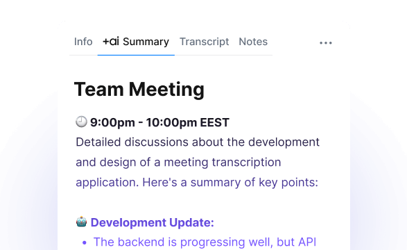 Ottieni un breve riassunto dopo i meeting e personalizzane il formato in qualsiasi momento. Ritrova facilmente tutte le tue note nella cartella sulla barra laterale.