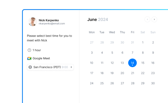 Crea una pagina di prenotazione e un link che mostri la tua disponibilità. E condividi con un click per programmare facilmente i meeting.