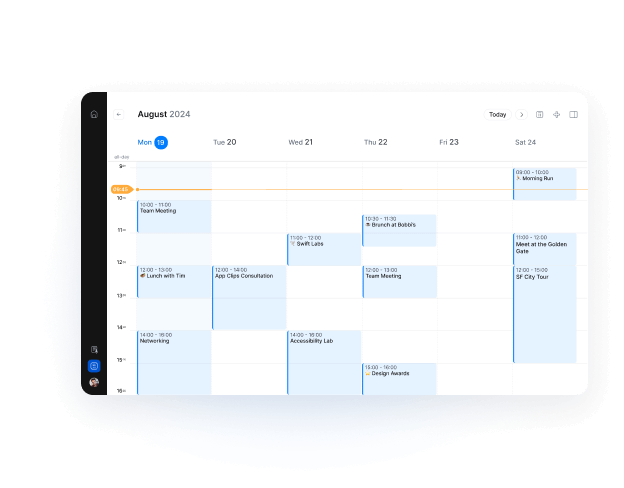 Sincronizza tutti i tuoi impegni su Google, Exchange e iCloud. Disponibile su Desktop e iOS, con supporto per Android in arrivo!